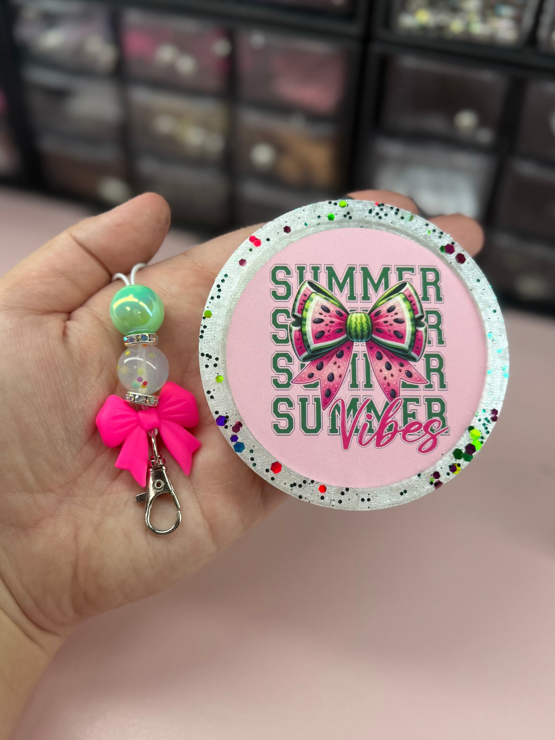 These bundles will include: Cardstock Freshie & the choice of either a Matching Hanger or Beaded Pen.